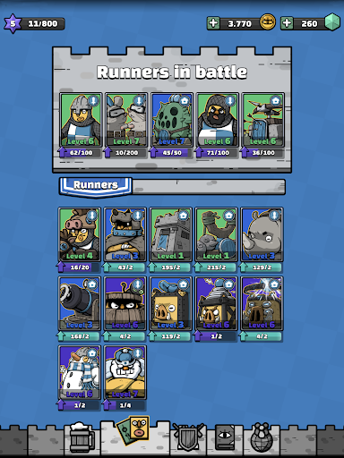 Pass five of your Runners through the enemy’s base within three minutes to win the game. As you can see that from their names, runners are brave warriors who never fear to charge. Some of the Runners destroy the enemy’s Towers. Each of the Runners has its own attribute and type. Choose from Runners to make epic plays, plan strategies, and pass through the enemy’s base as you battle your way to victory.