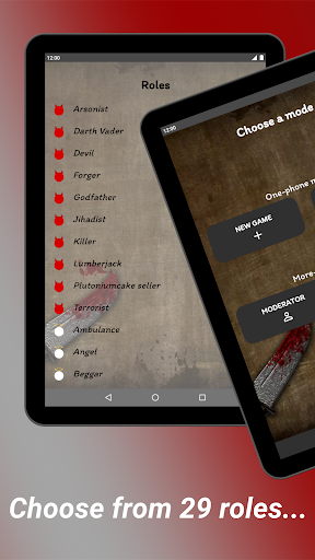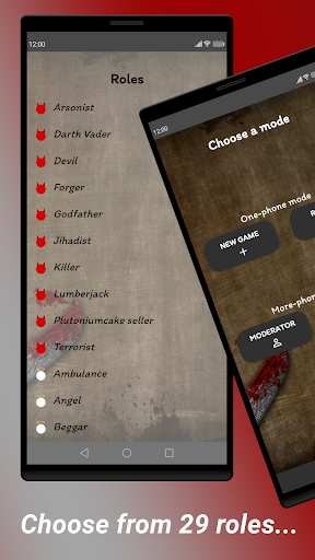 In one-phone mode, the app helps the Moderator keep track of events, thus ensuring smooth gameplay. The Moderator selects the roles, his/her phone goes around for casting, and then handles the events. If there is no time to finish the game, you can continue at any time since a continuous backup is made.
