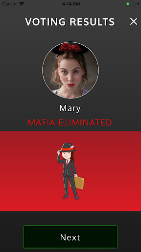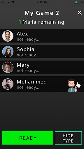 Your type will determine your game strategy. After each round you will have the opportunity to vote who you believe to be the mafia. Pay attention to voting patters as this could usually be the biggest give away for a mafia.
