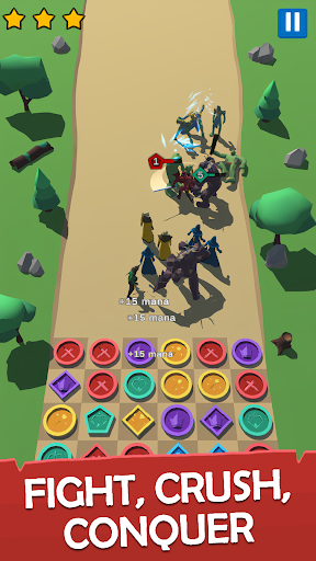 Unique combination of Match 3 Puzzle games and Fantasy RTS strategy. Match colors and summon epic medieval warriors, who will team fight tactics and defend from enemies. Lead the heroes vs monsters to crush legendary bosses, orcs, goblins, bandits, undead zombies, skeletons and other. Immerse yourself in the fantasy 3D world with lore of magic and team fight tactics.