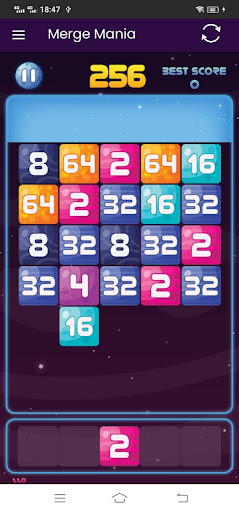 Merge Mania is a very popular strategic game in that you should merge the same number and sum up and then it will sum up with the side-by-side same numbers. It is really cool and addictive.