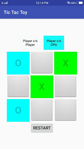 In Player vs CPU, you alone can challenge the CPU in this tic tac toe game