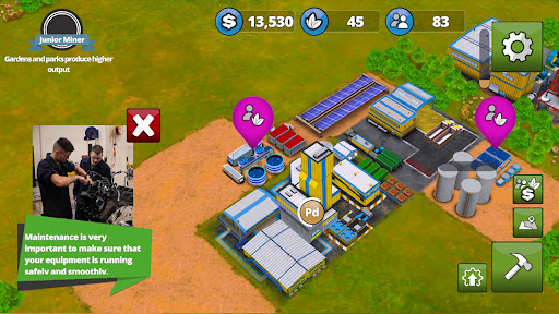 Hire technical advisors who will guide you through building your mine by extracting essential minerals from the ground.