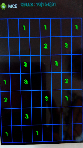 On the top of the screen something like 8[15-7]33 will be displayed. 8 refers to the number of red cells, 15 refers to the safe cells you should explore, 7 for the no. of cells you have explored. In this case when 7 becomes 15 you win:-) 33 refers to the numbers, displayed and hidden, green ones are some which are shown and purple ones are the numbers you discover.
