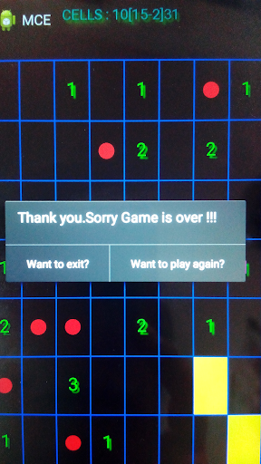 The aim of the game is to explore all the cells without clicking on the red-dotted cells (hidden).The numbers will give you an idea about the number of nearby unsafe cells. If you click on such a cell, all the cells will show up and the game will be over 🙁 The yellow cells are the ones which you have explored.