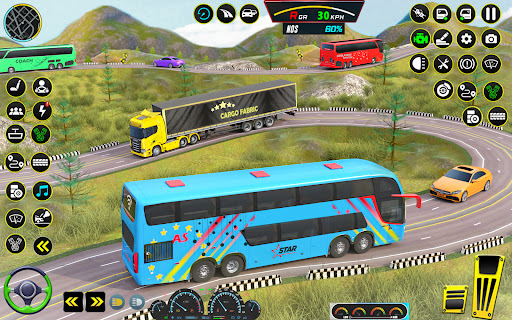 Drive modern luxury coaches in bus valley game and bus hill driving dangerous road game.