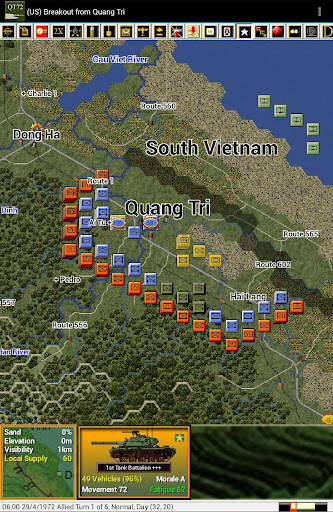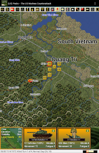 This is the first release in a new mobile version of the PC series Modern Campaigns. This first release covers the historical North Vietnamese offensive in the Quang Tri province in the spring of 1972. 14 scenarios are included of which you play 9 as the commander of the North Vietnamese forces while in the other 5 scenarios you are commander of a hypothetical US Marine force sent to assist the South Vietnamese. Following this free release, there will be additional releases in this series each representing a smaller mobile version of the corresponding PC game.