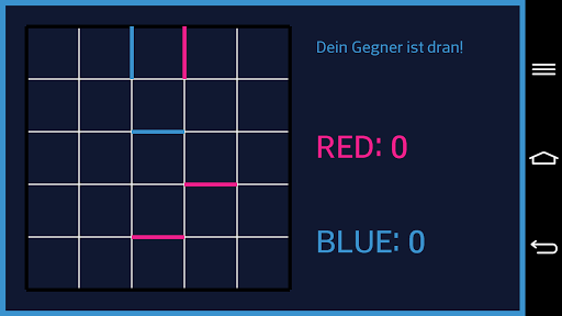 Play against friends whether online or directly on a device. Red vs. Blue classic game Dots and Boxes. Each is characterized alternately a line and who has more squares wins.