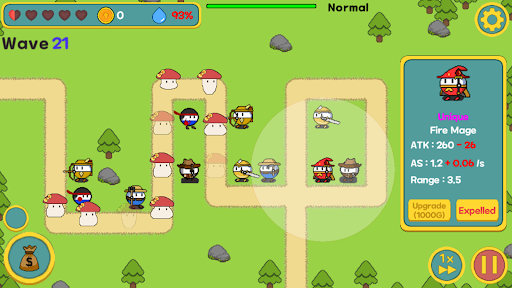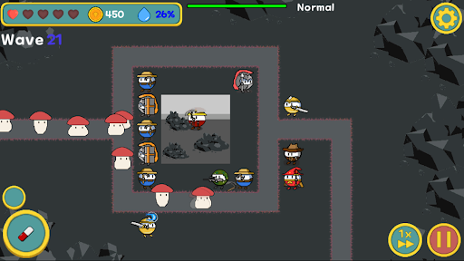 A defense game where you place them to defeat mushrooms along the way.