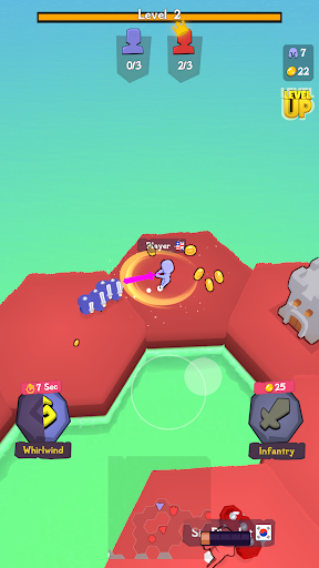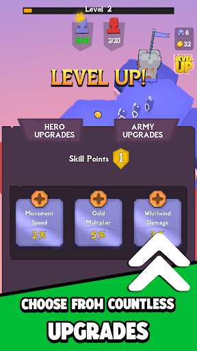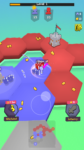Spend your coins on either producing soldiers and increasing your army or upgrading them.