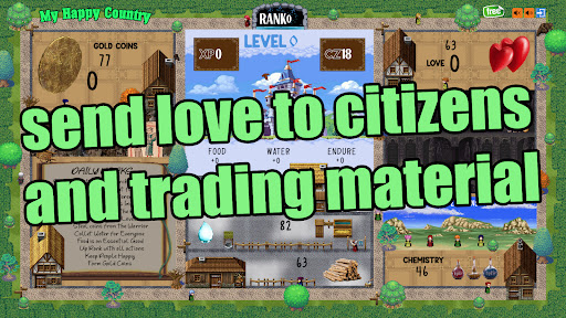 Make you Country better. Enter everyday for up the happiness and help the citizens. Click for gain gold coins, love and different resources.