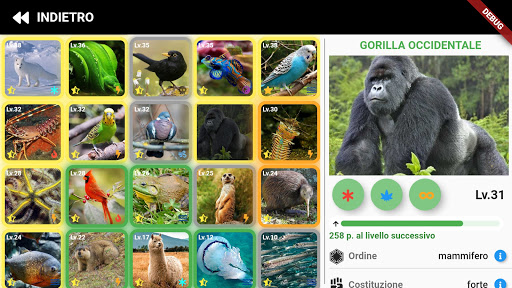 – a complete natural index, where you can find informations about all the animals you unlock;