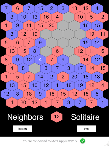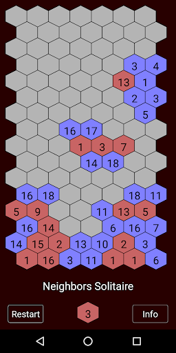 Then the adversary’s turn comes, and he will put a blue randomly numbered tile in a free place of his choice. And if there are red tiles with lower values in the adjacent places, they will be changed to blue, and so on.