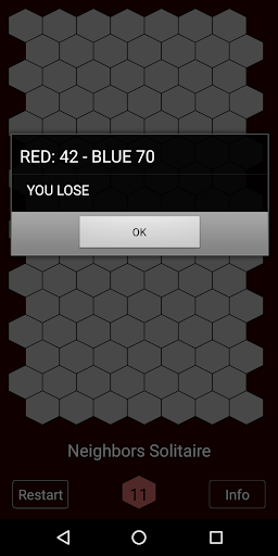 When the board is full, red and blue tiles are counted. If the red tiles are more than the blue ones, then you win, otherwise you lose.
