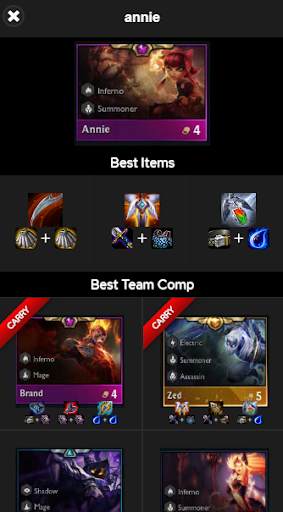 In this app easily access to best team comps and item list of the new version of LoL Team Fight Tactics , open the app and pick your favorite champion and see all you need to know while playing your game