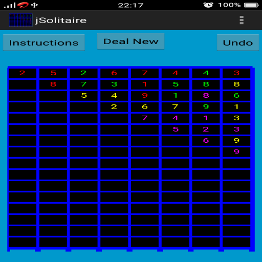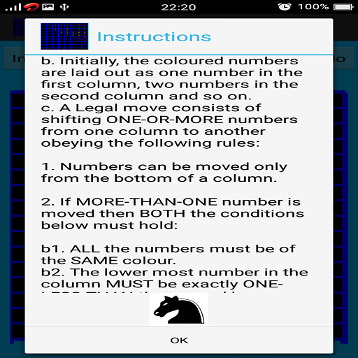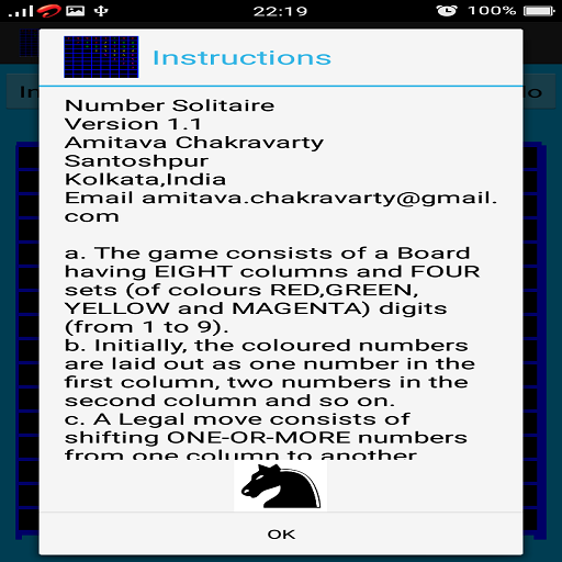 a. The game consists of a Board having EIGHT columns and FOUR sets (of colours RED,GREEN,YELLOW and MAGENTA) digits (from 1 to 9).