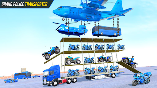 In this US Police Transport, you can drive the ATV quad bike & carefully load on the transport truck or plane in this police cargo transport game. In this police bike games, become the police bike games rider, & explore your bike driving skills by police car parking & ATV Quad bike parking on a transporter airplane in this plane transport game. In cargo ship simulator the simple & smooth controls of Crazy Car transport games, helps you to move smoothly on Police moto bike & atv quad bikes from where you can prepare yourself for Police Monster Truck transport in this free motorcycles game of 2022. In this Police bike transport games, become the moto bike parking master & police bike games of cargo truck & joining this atv driving game of police bike rider in this transport truck games.
