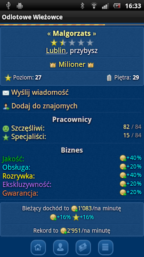 Gra Odlotowe Wieżowce to gra strategiczna w przeglądarce on-line. Przyciąga swoją fabułą i danymi ekonomicznymi. W tym samym czasie gra ponad 3 000 osób.
