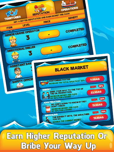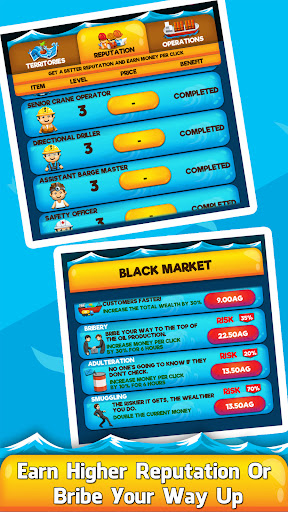 The turmoil history starts when you find an oil field in the ocean / sea. You will be developing, purchasing new equipment, erecting new buildings, hiring guards, personnel, making deals with competitors, acquiring the skill of stock trading, buying new possessions and many other fun things. In this incremental or idle game, you can build your oil empire as you see fit. Increase your investments, invest in new technologies. Drill & pump the oil to the surface, build trucks and sell at the best price to the oil refinery or store it to your oil wells waiting for future better prices. If you ever wanted to become a millionaire – nay, a billionaire? Well, you have the chance to live that story now by starting a oil mining empire! Simply click on oil driller to mine it and then buy upgrades as you earn more money and overtake the world’s billionaires to be the first trillionaire of all time.