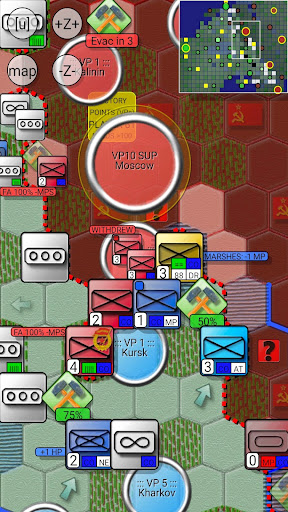 + Settings: Various options are available to alter the look of the gaming experience: Change difficulty level, hexagon size, Animation speed, choose icon set for units (NATO or REAL) and cities (Round, Shield, Square, block of houses), decide what is drawn on the map, and much more.