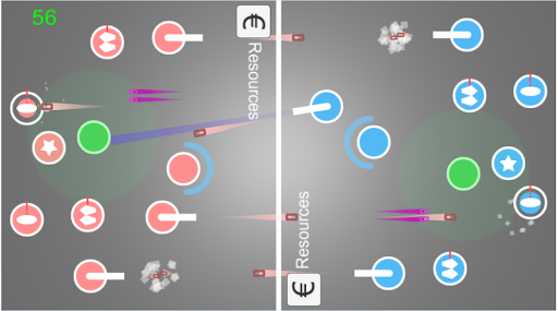 Manage gun platforms on your side of the screen to overcome the enemy’s side. Your commander mines the asteroid and generates money, which you can spend to buy new platforms. You’ll have to move and rotate the platforms and use their special abilities to destroy the enemy commander.