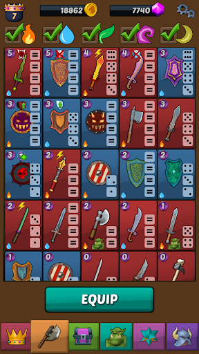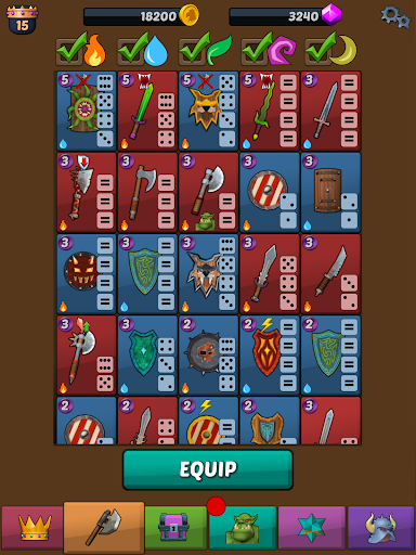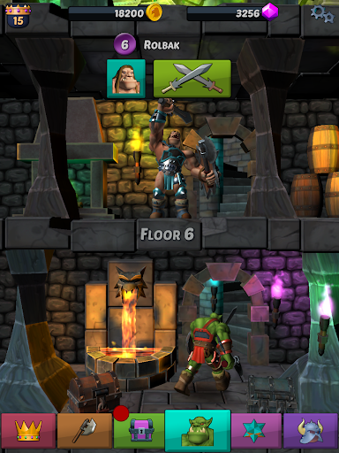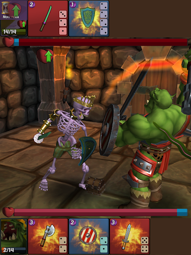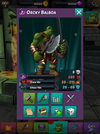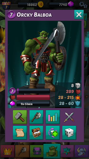 Recruit orcs, trolls, demons, skeletons, etc. Build your unique team with weapons, shields, special abilities, skill points, magic dice, minions, etc. Unlock your heroes’ unique abilities and improve them. Assign skill points to improve health, damage, defense, recovery speed, etc.