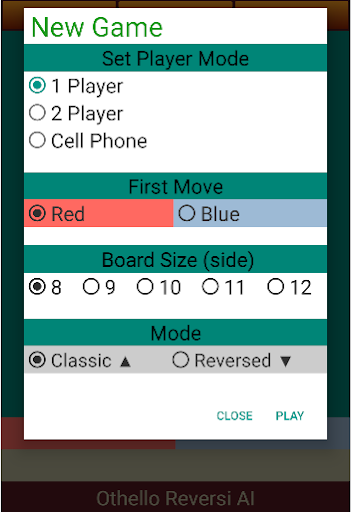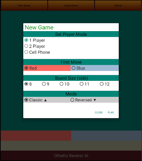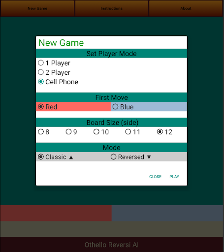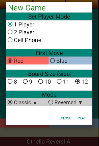 1.2. Select First Move: Red or Blue moves first.