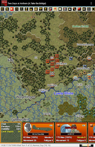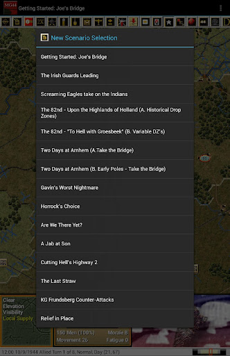This release includes 15 historical and hypothetical scenarios based on the PC Panzer Campaigns game of the same name. The game covers the bold Allied operation in the Netherlands in 1944 involving British and American airborne forces dropped along a path which eventually crossed the Lower Rhine River at the city of Arnhem together with British armored forces attempting to break through and reach the bridge over the river. In 11 of the scenarios you will play the role of Allied commander while 4 allow you to be in command of the German counterattack. In each case, the AI plays the part of the opposing commander.
