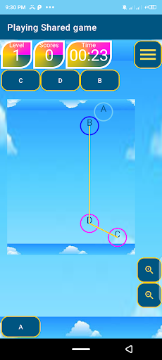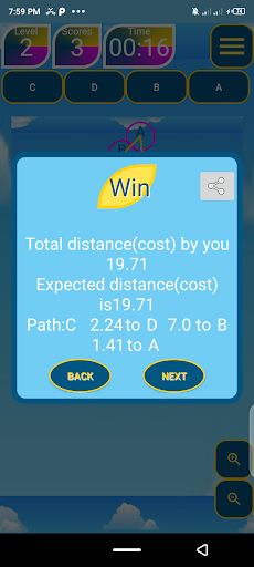 Firstly open the app, if don’t like the sound disable it at the top right side icon. Press Play Game (shortest path), Select new for a game in the popup as a new user and the initial level will be started. If you are not a new user pressing new will take to place where you can start from a level that you have unlocked. Press resume to continue from the previously played game. When a game is over you can only start new but have the chance of choosing a higher level than initial but the scores will not be gained.