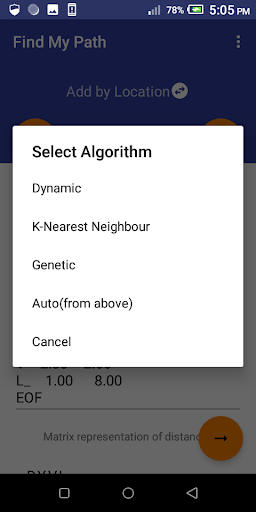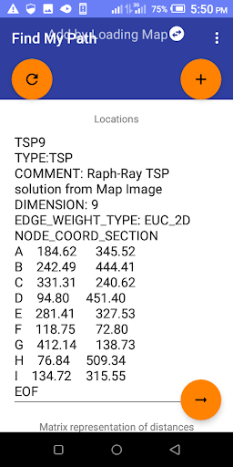 Open the App and click Find My Path for the solution model will be visible to work on. Select your input method by click on the current input method which now helps you to toggle between “add by location”, “add by loading map” and “add by distance”. After changing the desire input method click on the plus icon (top right) to add. You can always clear all by clicking on the clear icon (top left). After adding the problem click on the bottom right icon to get the shortest path. ). Clear data to start afresh problem when adding a new problem.