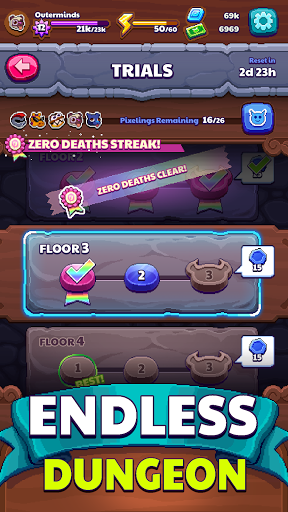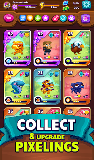 Unlock and collect over 30 hand-drawn pixel creatures, catch them all. Gather resources and manage them well to upgrade your creatures. Combine and unite heroes of different classes like fighter, rogue and mage to defeat your enemies with brute force, cunning and magic; the gathering of your team will define your strategy.
