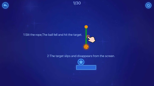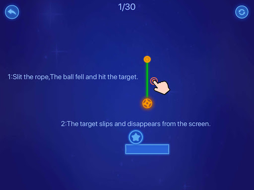 You need to slide the screen with one hand, cut the rope that hangs the colored ball, and make the orange ball fall. After an unreasonable physical collision,