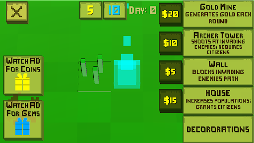 In this Pigeon Town Builder you must build up your own customizable settlement against the dark wizard’s invasions each night and defend your town from increasing waves of monsters. Build defences, Upgrade your structures and Decorate your town! How many waves can you survive? will you be able to defend your town?