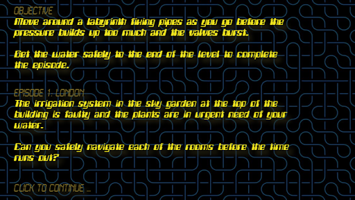 Move around a labyrinth fixing pipes as you go before the pressure builds up too much and the valves burst.