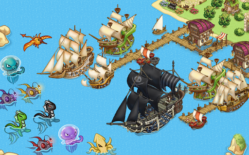 Create a seafaring, swashbuckling empire in Pirates of Everseas! Develop your city, construct ships, explore the open sea, and battle enemies in this exciting strategy game!