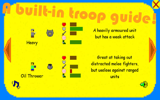 Each night, an enemy wave will spawn. Your job is to build the right army to counter the enemy’s army. You can read about the troops in the Instructions button, on the pause menu. You can even practice on the Sandbox, to help you get better with the different troops you encounter.