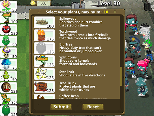 You will start with two plants and two slots for the plant. The number of plants and slots will increase every level. There are thirty different plants and you can have up to ten slots.