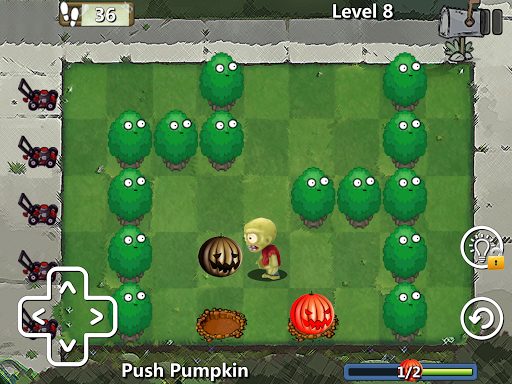 Control the zombie to push all pumpkins into the targets. The zombie can only push, not pull.
