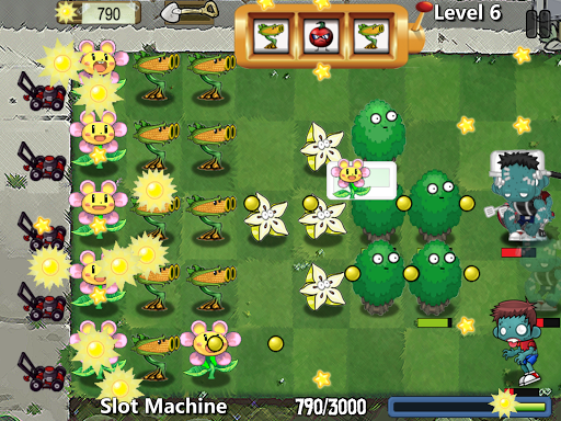 The Slot Machine mini-game is played differently. Instead of placing plants, a slot machine will position your plants. The machine can use a different set of plant sets at each level. An endless wave of zombies will attack the lawn. This will continue until you have collected enough sun to reach the goal of the level.