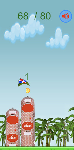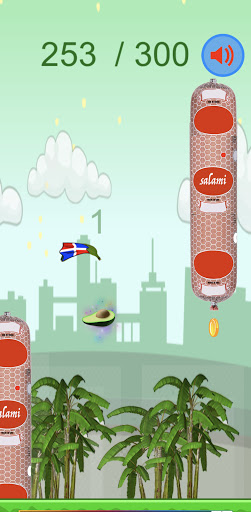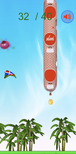 Este super contagioso juego donde la meta es de que el platano pase por el medio de los salami… aver cuantos salamis puedes pasar?