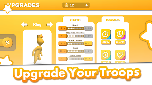 Pass levels and accumulate evolution cells that will be useful to you to improve the power of your troops.