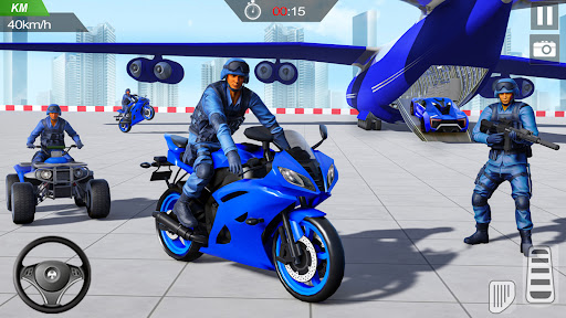 The theme of police transporter game is transportation of police car game. Also police ATV quad bike, police muscle car, cargo through police plane car simulator. Cruise ship driving along with police cargo truck loader driving. Not to mention helicopter transport game missions.