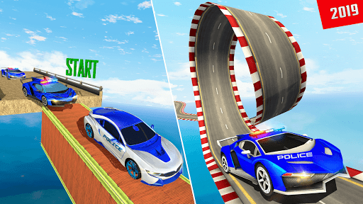 -Car Stunts: Police Car Games with High quality graphics and impossible crazy car driving