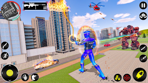 Cop robot gameplay in police spider rope hero games is fast-paced & intense in shooting games offline with player having to navigate environment quickly in city war game & efficiently while fighting off enemies in speed hero game. In shooting range games, combat is key of these flying superhero games with player’s character armed with an arsenal of weapons & gadgets, including guns, grenades & abilities in games flying. In new shooting games, combat system is designed to be fluid & dynamic in rope hero 3d allowing players to dodge & weave through enemy attacks in offline shooting game while landing precise strikes & using their gadgets in third person game.