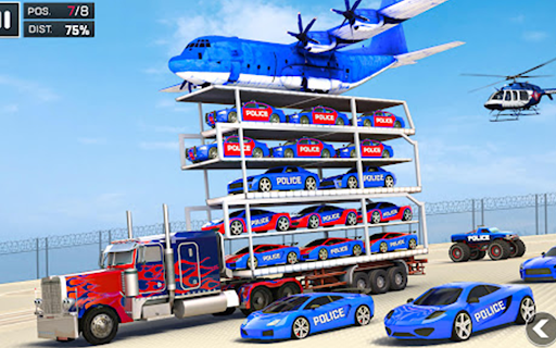 Police car Transport truck trailer has multiple levels in truck simulator 2022. Drive a blue police truck to the US police transport truck and park them like multi-story car parking in an American truck simulator 2022. Drive the loaded police transport truck to the helipad in the best transport truck games 2022. Load the Police limo to the plane in national police plane transport mode. Fly police Cargo Plane to the other city among Limo car transporter truck game. Unload the police transport truck from the police cargo plane. A multi-level car parking simulator is a transport truck game challenge with the ability to drop a blue police truck to destinations across the city to become a crazy trucker in US police parking games with music.