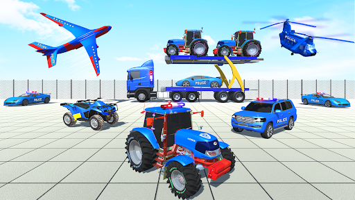 Enjoy Ultimate Police Transport Tractor Driving Game, You as a Police Cop in this Grand Police Vehicle Transports Truck Simulator & Drive Multiple Police Vehicles like Police Bikes,Police Cars,Police Tractors, ATV Quad bikes in this Police Transport Tractor simulator, You have also played many Police Car parking games & ultimate Car Games are expanding the driving controls of drivers by bringing new editions of Police Car Transport driving games to give them more broader perspectives of Police transport Truck Simulator than one of the best Police Car Simulator in the world of Police Car Games and Cargo transport truck simulator, you also have to drive the car transporter truck from city to offroad & that’s so adventurous so become a Pro Driver to perform your Cop duty with multiple transportation task in this Grand Police Transport Tractor Game.
