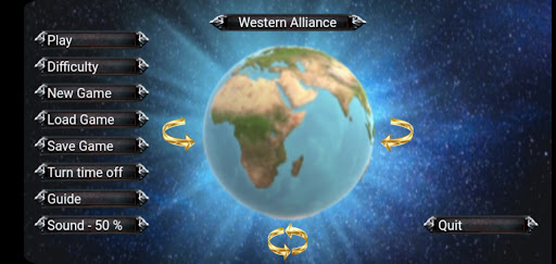 New game – select Western, Eastern or Random Alliance to generate friendly, neutral and enemy countries
