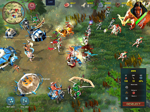 The game also provides full control over camera rotation, zoom and pan and includes multiple unit selection using both tap or drag gestures. Use the group selection feature to create groups of warrior units, ensuring you deliver your best strategy at all times.