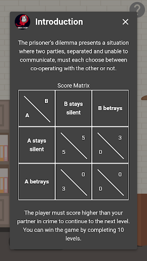 The application is a simulation of popular logical theory Prisoner’s Dilemma.