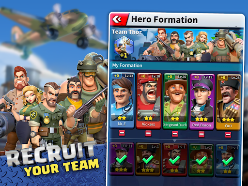 Playing this realistic match-3 puzzle game, you will find the most attractive hero designs from different walks of life. Gross, Red Baron, Sergeant York, Yuri, Mr. E, Karuna, and many others will fight together to defeat the enemies. You will be able to recruit talented heroes and enhance your troops.